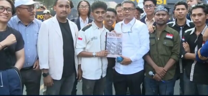 Setelah usai berdialog dengan perwakilan Mensesneg, Koordinator BEM Nusantara, Pier Lelosa, memberikan keterangan kepada media terkait aksi demo dan tuntutannya.