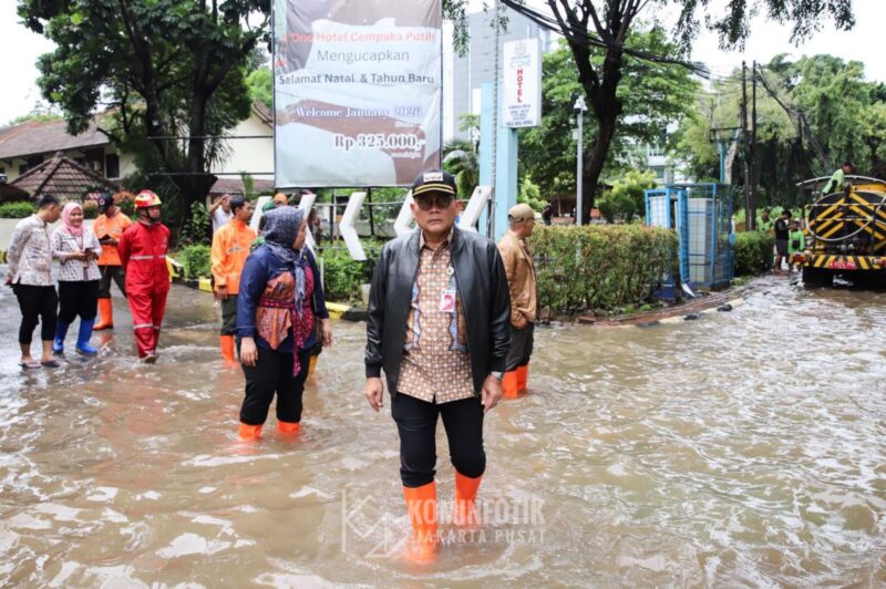 Wali Kota Administrasi Jakarta Pusat Arifin meninjau langsung lokasi genangan di kawasan dengan kontur jalan lebih rendah. Ia menyebut genangan terjadi akibat curah hujan ekstrem sejak Rabu malam hingga subuh.